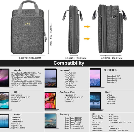 Slim & Expandable Case 12.9 13 Inch Travel Laptop Shoulder Bag for Macbook Air 13" M3/M2/M1, Macbook Pro 13" M2/M1, Ipad Pro 12.9"/13"/11", Ipad Air 13",L01G03